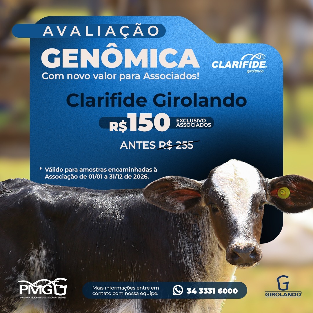 A Associação Brasileira dos Criadores de Girolando iniciou este ano uma campanha para incentivar os associados a genotiparem os animais de seus rebanhos. O valor da avaliação genômica Clarifide Girolando passa a ter desconto de aproximadamente 41%, caindo de R$ 255,00 para R$ 150,00 por amostra encaminhada à entidade.